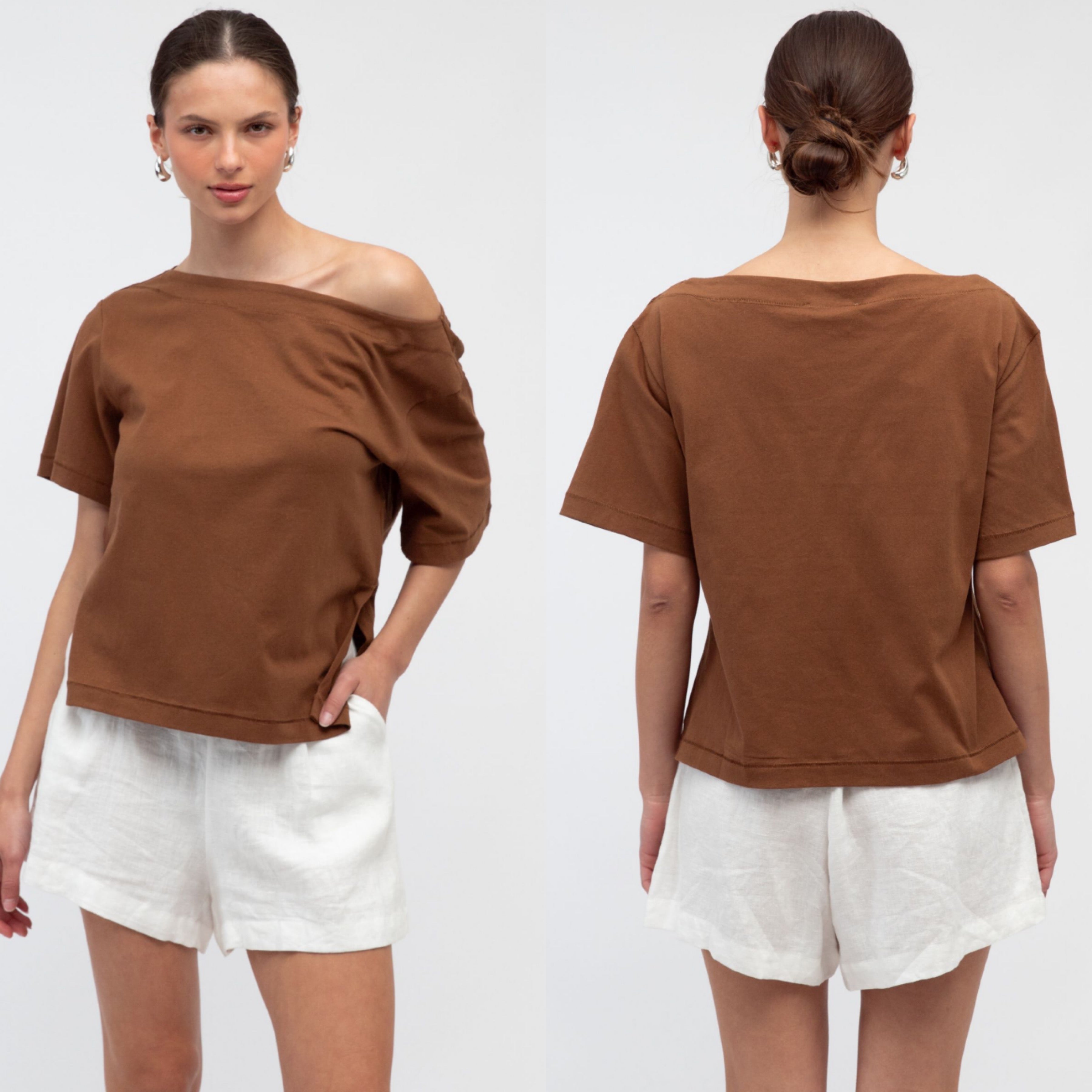 Jenna boat neck top brown